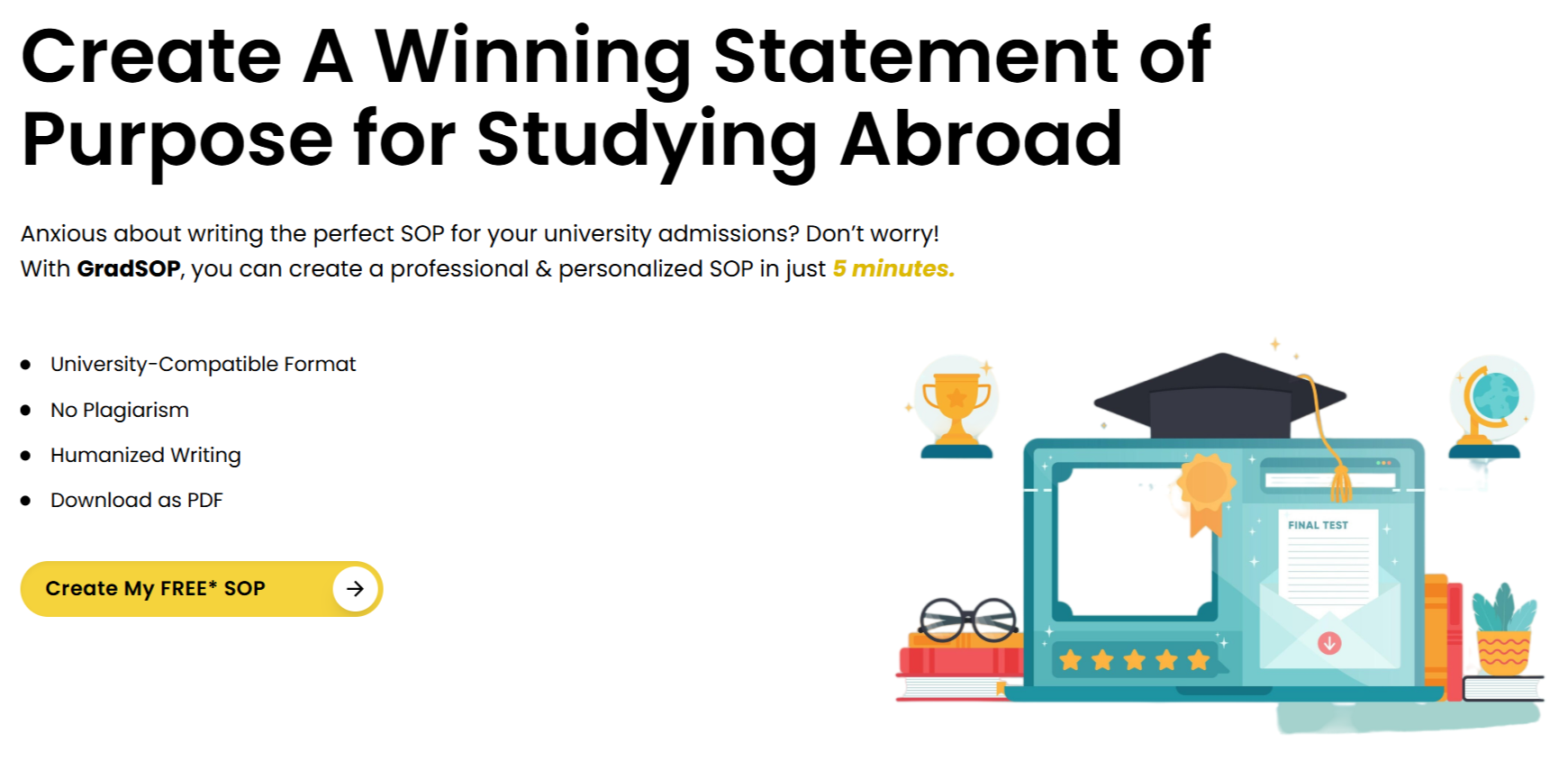 Crafting the perfect SOP and LOR is a must if you want to get that coveted admission to a foreign university. But it is more easily said than done. If you want to write a compelling SOP and LOR you need help. GradRight’s GradSOP combines AI efficiency with expert human guidance.